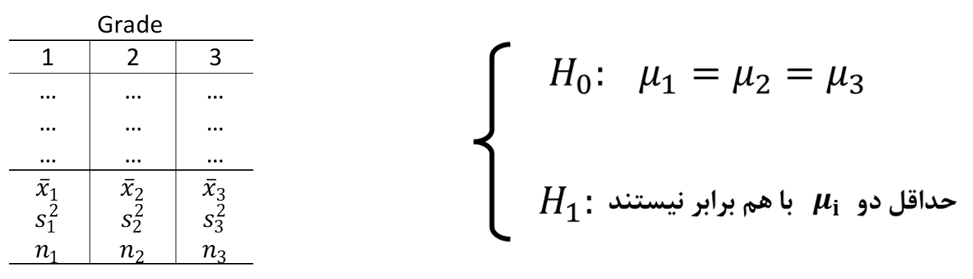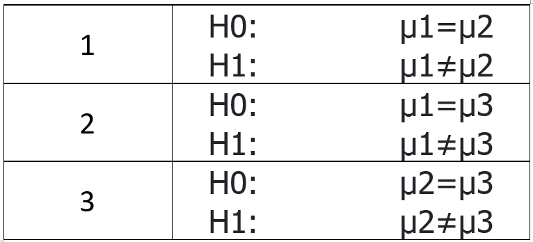 با توجه به ترکیبهای دو تایی سه میانگین این جوامع، آزمونهای فرض به صورت زیر درخواهند آمد: