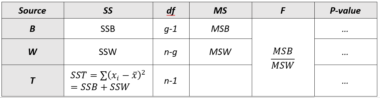 از این رو دو آماره SSB و SSW در نظر گرفته می شود.