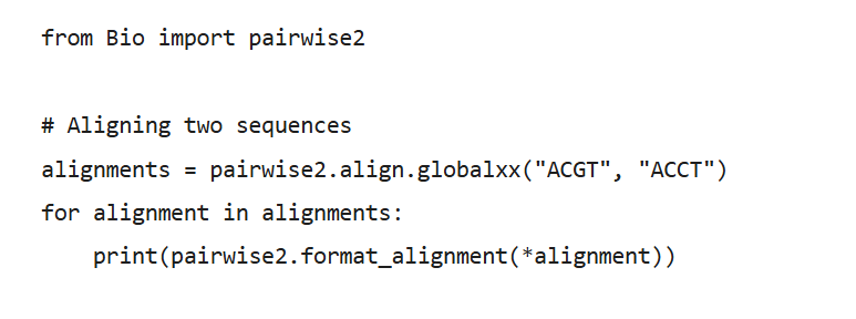 همترازی توالی فرآیند مرتبسازی توالیها بهمنظور شناسایی نواحی مشابه است. این کار میتواند بینشهایی در مورد روابط عملکردی، ساختاری یا تکاملی ارائه دهد. استفاده از پایتون برای ژنومیک، همترازی توالی را ساده میکند.