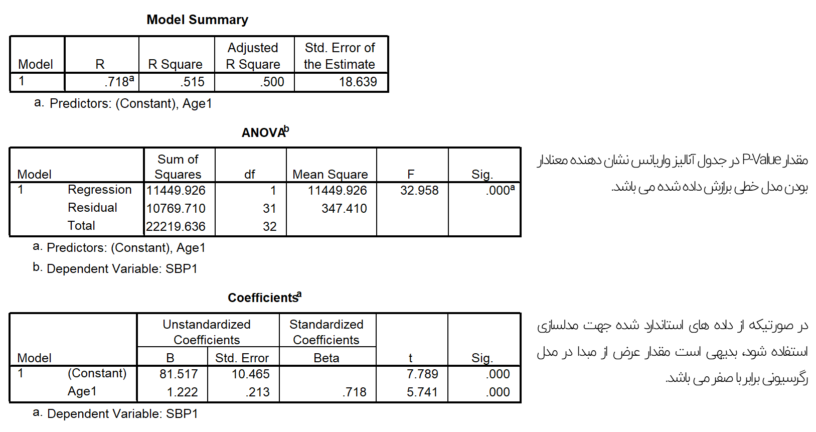 مثال از خروجی آزمون های فرض مدل رگرسیونی