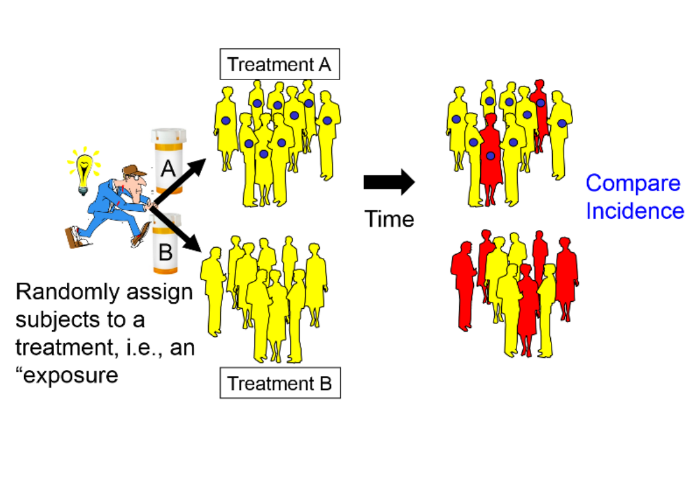 آزمون های علیتی عموماً مطالعات آینده نگری هستند که از یک جامعه دو گروه به صورت رندوم انتخاب می شوند و مداخله موضوع مطالعه بر روی گروه ها انجام می شود و سپس نتایج میان دو گروه مقایسه می شوند.