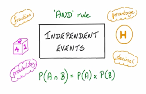 اگر دو رویداد مستقل از یکدیگر باشند، احتمال توأم آنها برابر است با حاصلضرب احتمالهایشان:
