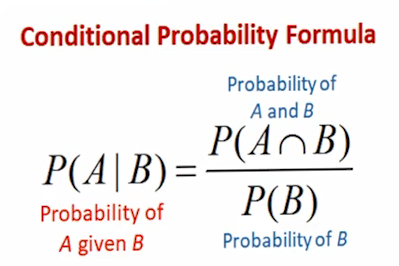 یعنی احتمال وقوع A به شرط وقوع B، برابر است با احتمال توأم A و B تقسیم بر احتمال B.