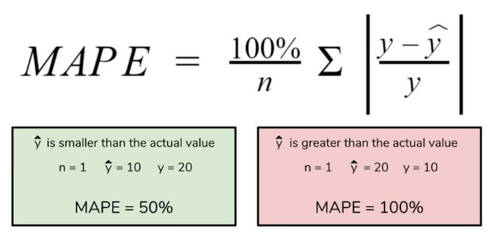 - در صورت صفر بودن مقدار واقعی در یک رکورد، مقدار MAPE قابل محاسبه نمی باشد.