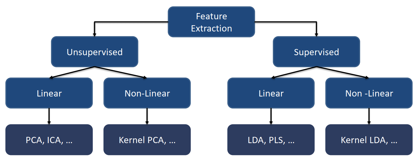 در تکنیک های استخراج ویژگی، با ایجاد ترکیب های خطی از ویژگی های اولیه، فضای n بعدی داده ها به فضای کوچکتری نگاشت داده میشود، بطوریکه ویژگی های ساخته شده جدید نماینده خوبی از داده های اولیه باشد.