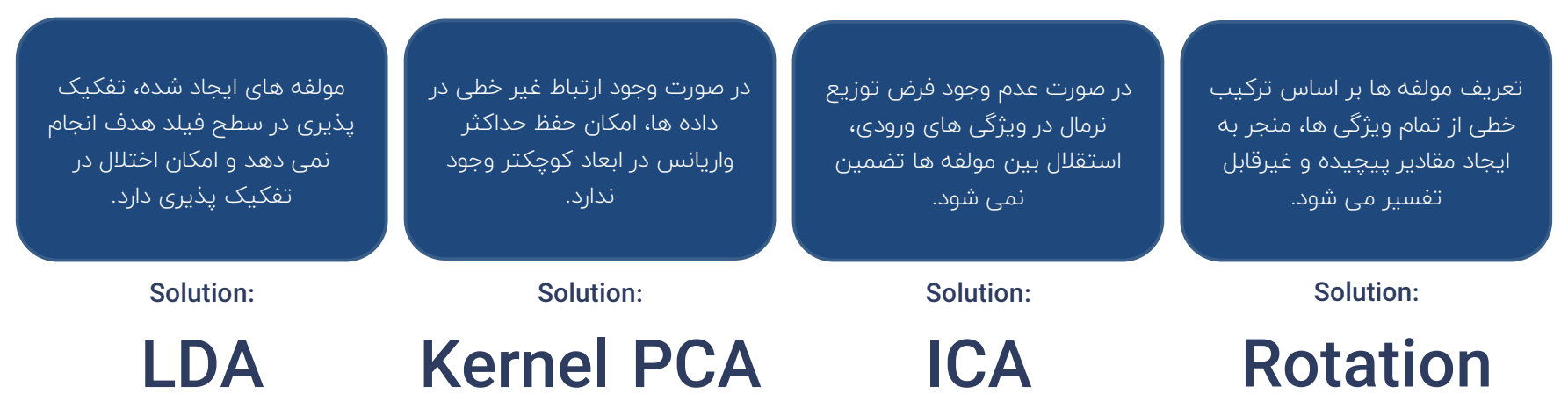 به علت تغییر در ماهیت و مقادیر ویژگی های اولیه، اغلب در مسائلی همچون پردازش تصویر، سیگنال و یا مسائلی که به تفسیر پذیری نتایج نیازی ندارند استفاده میشود.