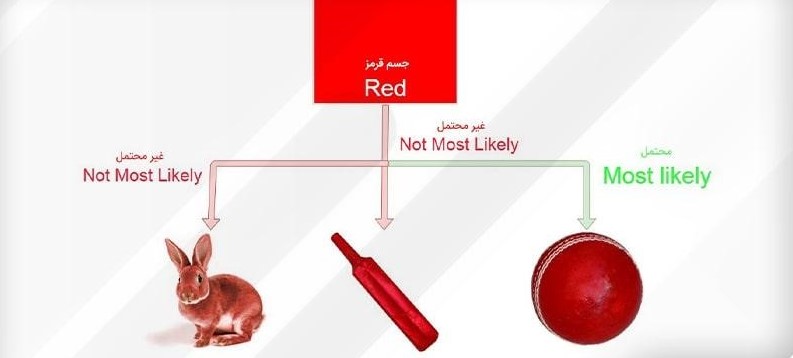 بنابراین در مثالی که داریم ویژگی ما رنگ قرمز است که آن را با هر سه گروه مطابقت میدهیم و میبینیم که احتمال اینکه این جسم یک توپ باشد خیلی بیشتر است.