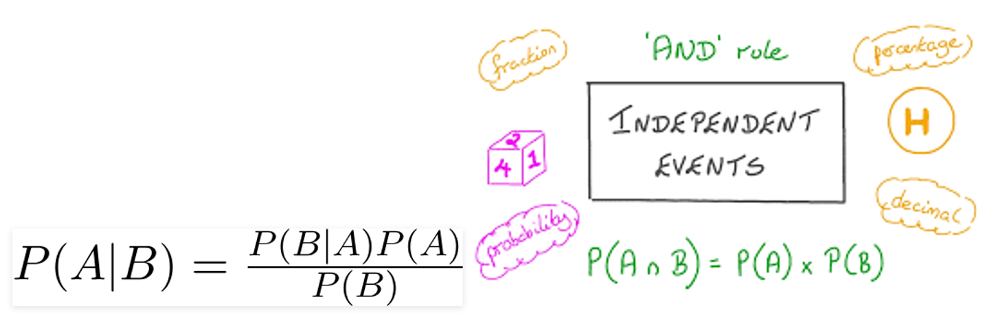قضیه ی بیز احتمال رخ دادن یک پیشامد را هنگامی که پیشامد دیگر اتفاق افتاده باشد، بدست میآورد. همانطور که در معادله ی زیر مشاهده می کنید، با استفاده از تئوری بیز ،خواهیم توانست احتمال رخ دادن A را هنگامی که B اتفاق افتاده باشد، بدست آوریم. در اینجا، B شواهد و A فرضیه است.