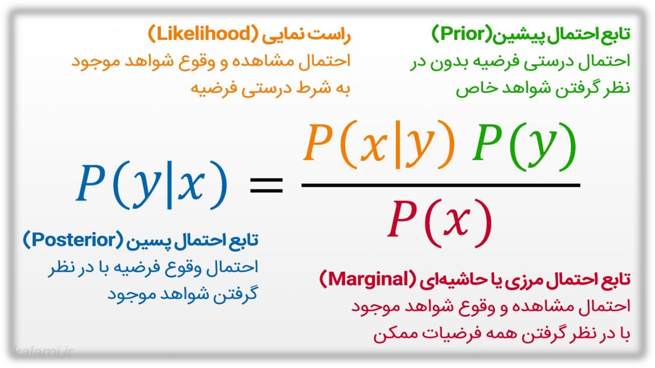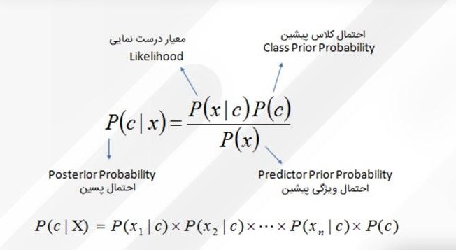 این الگوریتم از نظریهی بیز استفاده میکند که فرمول آن بهاین شکل است: