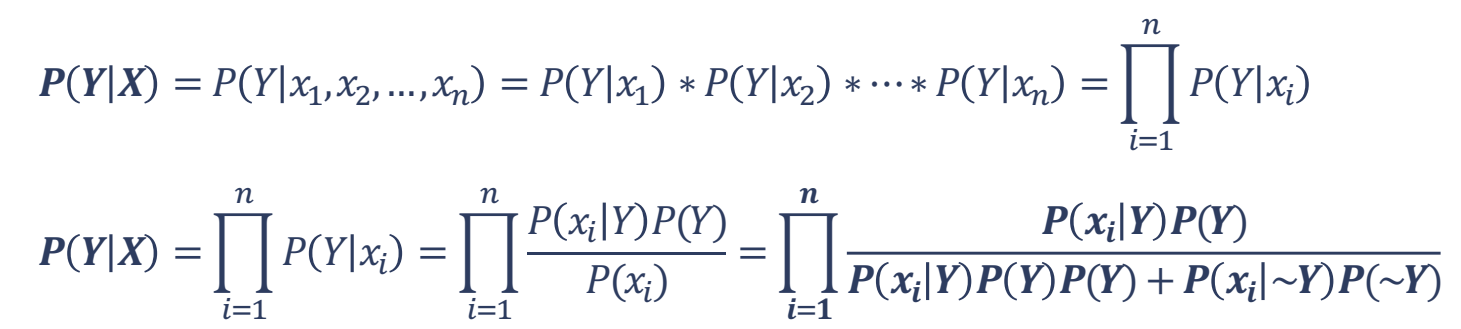 بر اساس روابط بیز، احتمال پیشین کلاس های هدف و همچنین احتمال پسین به شرط وقوع یک ویژگی با کمک داده های آموزشی بدست می آید: