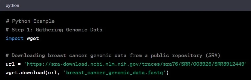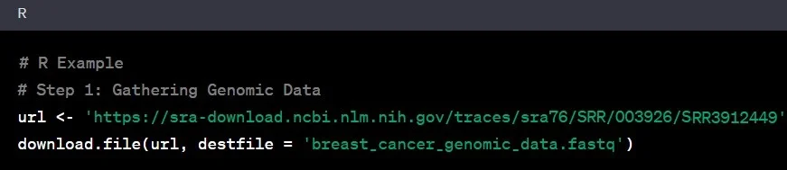 مثال: شما به پایگاه داده SRA دسترسی پیدا کرده و دادههای ژنومی مربوط به مطالعهای بر روی بیماران مبتلا به سرطان سینه را دانلود میکنید.
