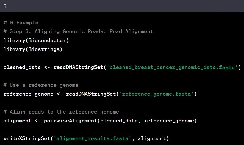 خواندن توالی ژنومی مرحله بعدی در تحلیل دادههای ژنومی است. تراز کردن دادههای تمیز شده با یک ژنوم مرجع به شناسایی تغییرات و درک چشمانداز کلی ژنوم کمک میکند. این کار مانند کنار هم قرار دادن قطعات یک پازل برای ایجاد تصویر بزرگتر است.