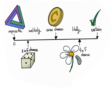 احتمال(Probability): شاخه ای از ریاضیات که به صورت عددی باور پذیری رخداد یک پیشامد را بیان می کند. برای محاسبه احتمال باید حالت های ممکن را مخرج کسر قرار داد و حالت های مطلوب را در صورت کسر قرار داد.