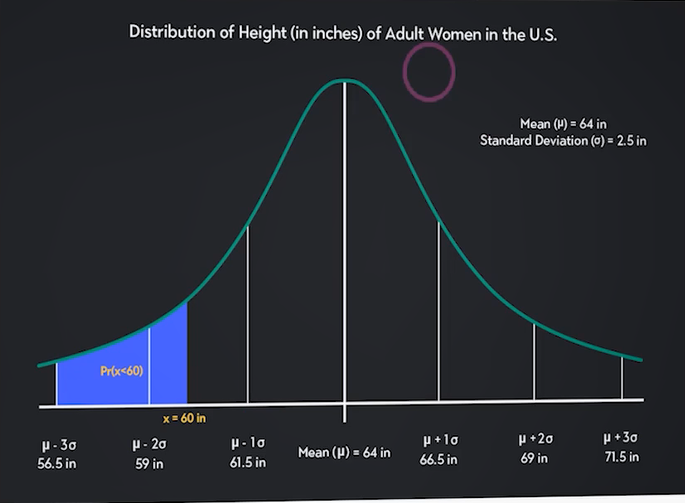 - مثال: قد زنان در آمریکا که تقریباً توزیع نرمال دارد. با دانستن میانگین و انحراف معیار، میتوان تخمین زد چه درصدی از زنان در بازههای قدی مشخص قرار میگیرند.