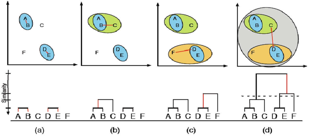 با این روش سلسله مراتبی از خوشه ها ایجاد می شود و با انتخاب هر سطح می توان خوشه های به دست آمده در آن لایه را استخراج کرد. (رویکرد پایین به بالا Agglomerative Approach)