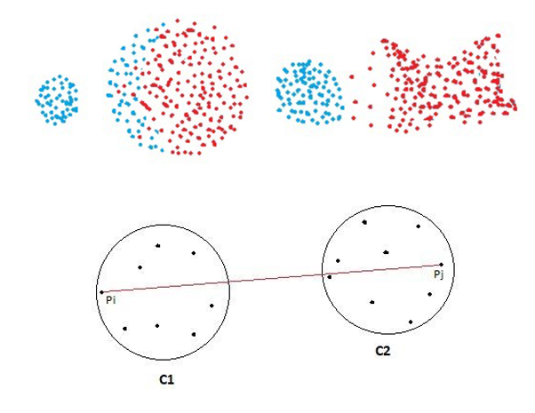 امکان شناسایی الگوهای خوشه ای غیر بیضوی را فراهم می سازد، اما حساسیت به نویز در این روش بالاست و در صورت وجود نویز بین خوشه ها عملکرد مناسبی نخواهد داشت.