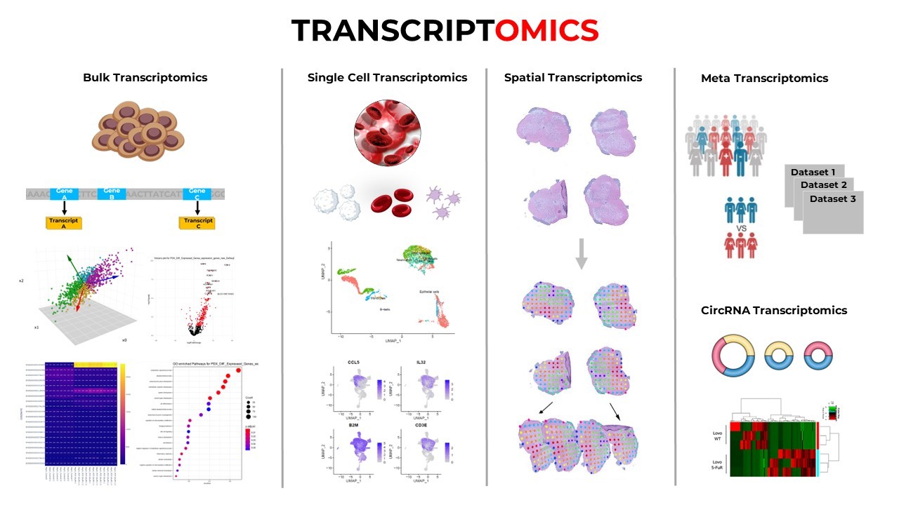 دادههای ترنسکریپتومیک به بیان ژنها از طریق فهرست کردن مجموعه کاملی از mRNA در یک سلول میپردازد. mRNAها پیامهای DNA را به پروتئینهای کاربردی تبدیل میکنند. مطالعه و ثبت این دادهها به «پروفایل بیان ژن» معروف است. فهم الگوهای بیان ژن برای کشف فرآیندهای سلولی، مراحل رشد و واکنشها به محرکهای خارجی حیاتی است. پژوهشگران اغلب از تکنولوژیهایی مانند توالییابی RNA برای تولید مجموعههای داده ترنسکریپتومیک و بررسی فعالیت ژنها استفاده میکنند.