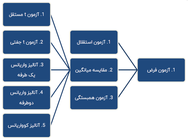 فرض کنیم که 4 مرحله فوق که توضیح داده شد انجام شده اند، حال نیاز به آن است که با استفاده از ابزار ها و روش های آماری شناخت دقیقی از وضعیت داده ها و روابط بین آن ها را کشف کنیم.
