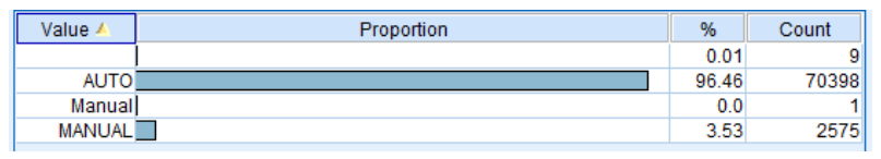 مثال: داده های ناسازگار، در یک دیتاست در اختیار قرار گرفته که وضعیت جعبه دنده را نمایش می دهد، دیده شد که وضعیت آمار نوع جعبه دنده با مقدار کمی آن به نمایش گذاشته شد؛ اما در نوع جعبه دنده Manual یا همان دستی از دو نوع املای لغتی متفاوت استفاده شده است که باعث شد که داده ها به جای اینکه به دو بخش دنده اتوماتیک و دستی تقسیم شوند به سه قسمت تقسیم شده اند که پس از مشاهده این مشکل کلمات جایگزین یکدیگر شدند به این حالت “ناسازگاری دیتا” گفته می شود.