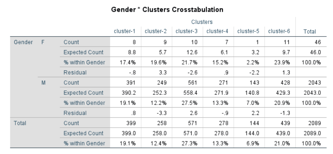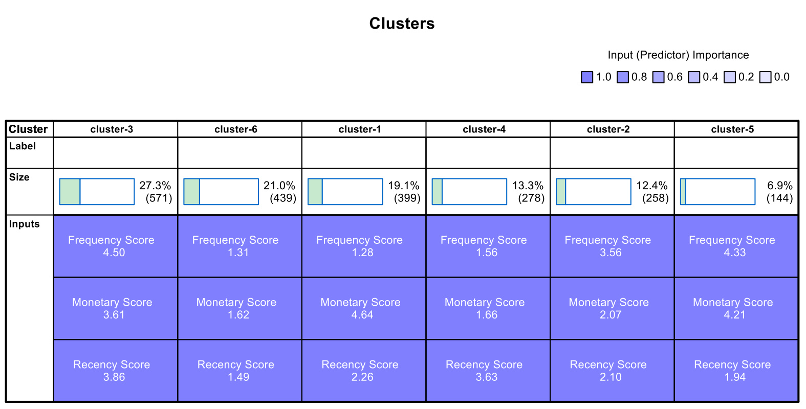 به عنوان مثال در تصویر زیر در سنجش وفاداری مشتریان با استفاده از ایجاد خوشه بندی و شاخص RSM و از سوی دیگر فیلد کیفی دیگری به نام جنسیت که رفتار مشتریان خانم و آقا را در خوشه های بدست آماده مورد بررسی قرار داده است.