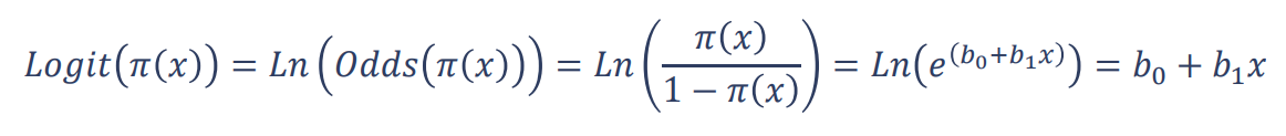 لگاریتم طبیعی بخت به عنوان تبدیل لوجیت یا بعضا (Log-Odds) شناخته می شود. در رگرسیون لجستیک با استفاده از تبدیل لوجیت بر روی احتمال وقوع x (برآورد مقدار y) می توان رابطه خطی رگرسیون را به شکل زیر نمایش داد.