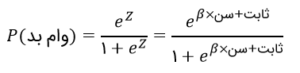 در مورد ما، z تابعی از سن است؛ احتمال وام بد را بهصورت زیر تعریف میکنیم: