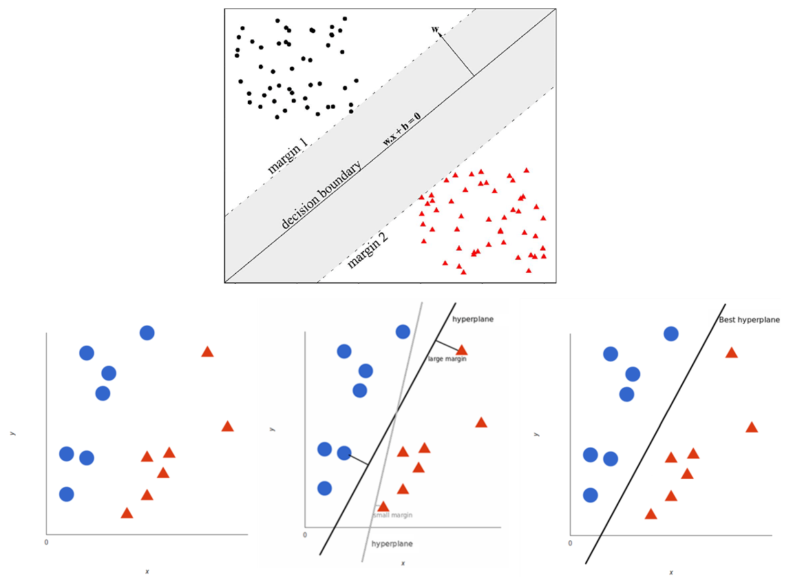 ایده اصلی و متمایز این الگوریتم نسبت به سایر الگوریتم ها، یافتن خط جداکننده و رده بند به شکلی است که حداکثر فاصله از رکوردهای کلاس های هدف را داشته باشد.
