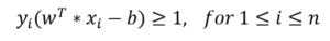 بر اساس مفهوم بردار نرمال w در هندسه تحلیلی ثابت می شود، فاصله بین دو خط مرزی که به عنوان حاشیه (Margin) شناخته می شود، برابر با 2 برابر معکوس نرم دوم w می باشد.