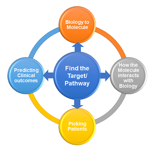 نیاز و فرصتی برای کاوش رویکردهای جدید در راستای کشف دارو وجود دارد که این رویکردها بر مجموعه داده های عظیم (عمومی و خصوصی) بنا شده اند که بر اساس موفقیت ها و شکست های گذشته برای هدایت رویکردهای شبیه سازی رایانه ای (in-silico) به سمت درمان های جدید ساخته شده اند. پیشرفت های ژنتیک و زیست شناسی مولکولی اهداف بالقوه جدیدی را برای توسعه داروها آشکار کرده است. تصمیم گیری در مورد اینکه کدام هدف را دنبال کنیم، چالش برانگیز است و زمینه ای برای افزایش بهره وری وجود دارد. ما می خواهیم به مدلی با کارایی بالا برسیم که از فناوری های نوظهور استفاده کند و از پتانسیل کلان داده یا بیگ دیتا بهره برداری نماید.