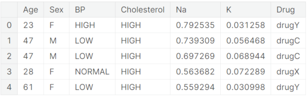 دادههایی که در اختیار دارید شامل اطلاعات پزشکی بیماران است: سن، جنسیت، فشار خون، کلسترول، میزان سدیم و پتاسیم در خون، و داروی تجویز شده. فرض بر این است که هر بیمار تنها یک دارو دریافت کرده است. مدیر از شما میپرسد: «چه مسئلهای میتوانیم با این دادهها حل کنیم که ارزش افزودهای برای کلینیک داشته باشد؟»