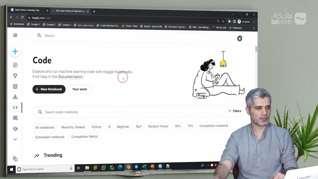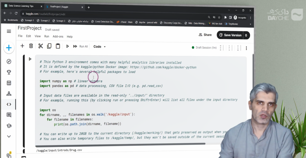 حال وارد محیط Kaggle میشویم. فرض بر این است که شما قبلاً حساب کاربری Kaggle و حساب ChatGPT خود را فعال کردهاید. از ChatGPT بهعنوان یک دستیار هوشمند کمک میگیریم تا در انجام مراحل پروژه، راهنمایی بدهد و حتی کدهایی را برای ما بنویسد. این کدها را در زیرساخت Kaggle که بهصورت آنلاین و بدون محدودیت نرمافزاری و سختافزاری در دسترس است، اجرا خواهیم کرد.
